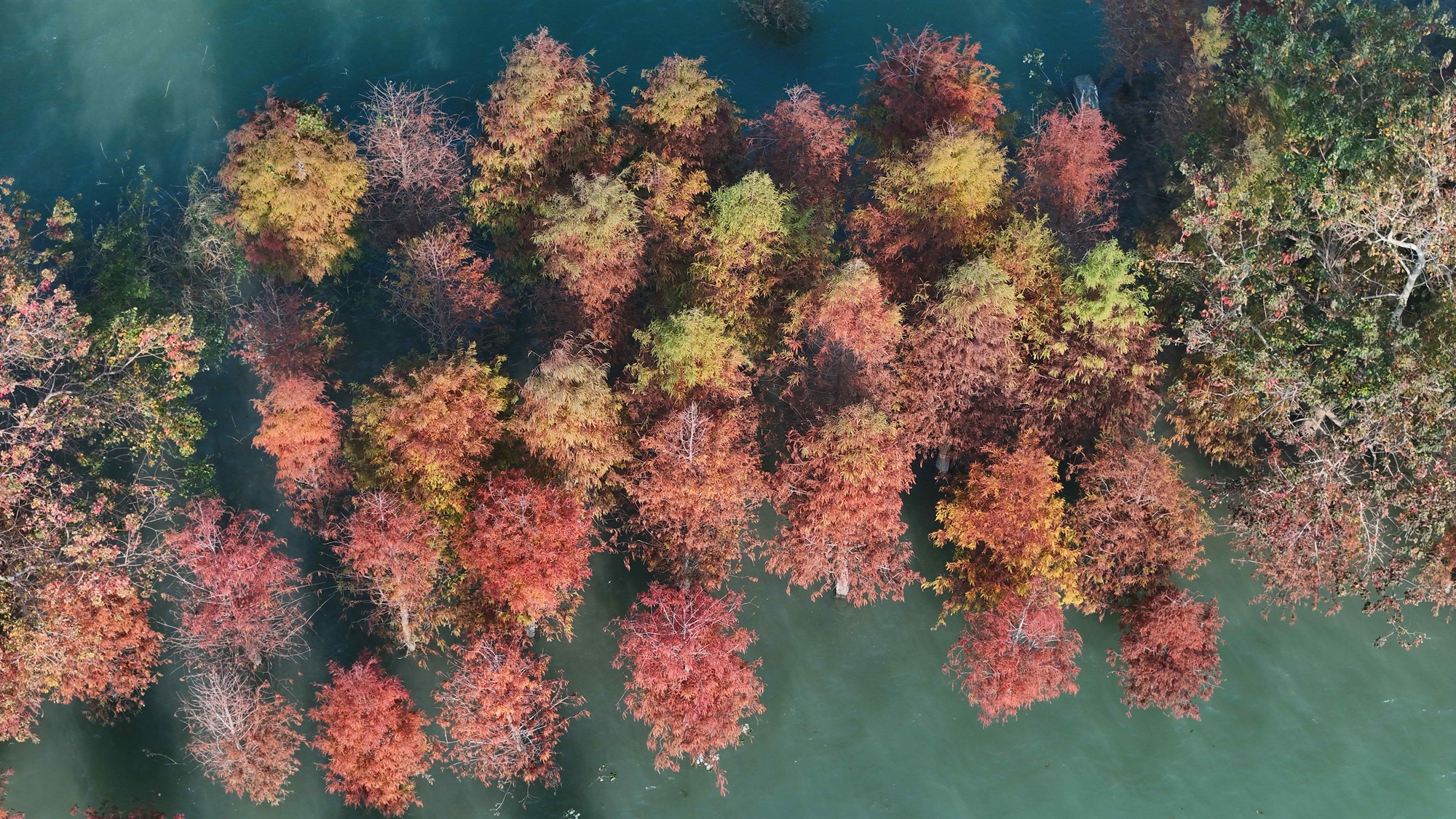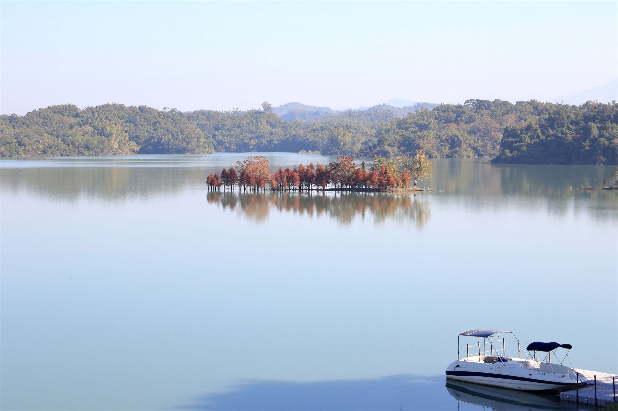 農水署表示,近期南部水情良好,烏山頭水庫水位接近滿水,湖中小島的落羽松也已經換上吉慶的紅色新衣,紅葉倒映在清澈的湖水中,園區內外以及沿途的景緻也經過精心設計,並設置招財納福的充氣財神裝置,為園區增添了濃厚的年節氣氛,是大人小孩最愛的走春打卡好去處。