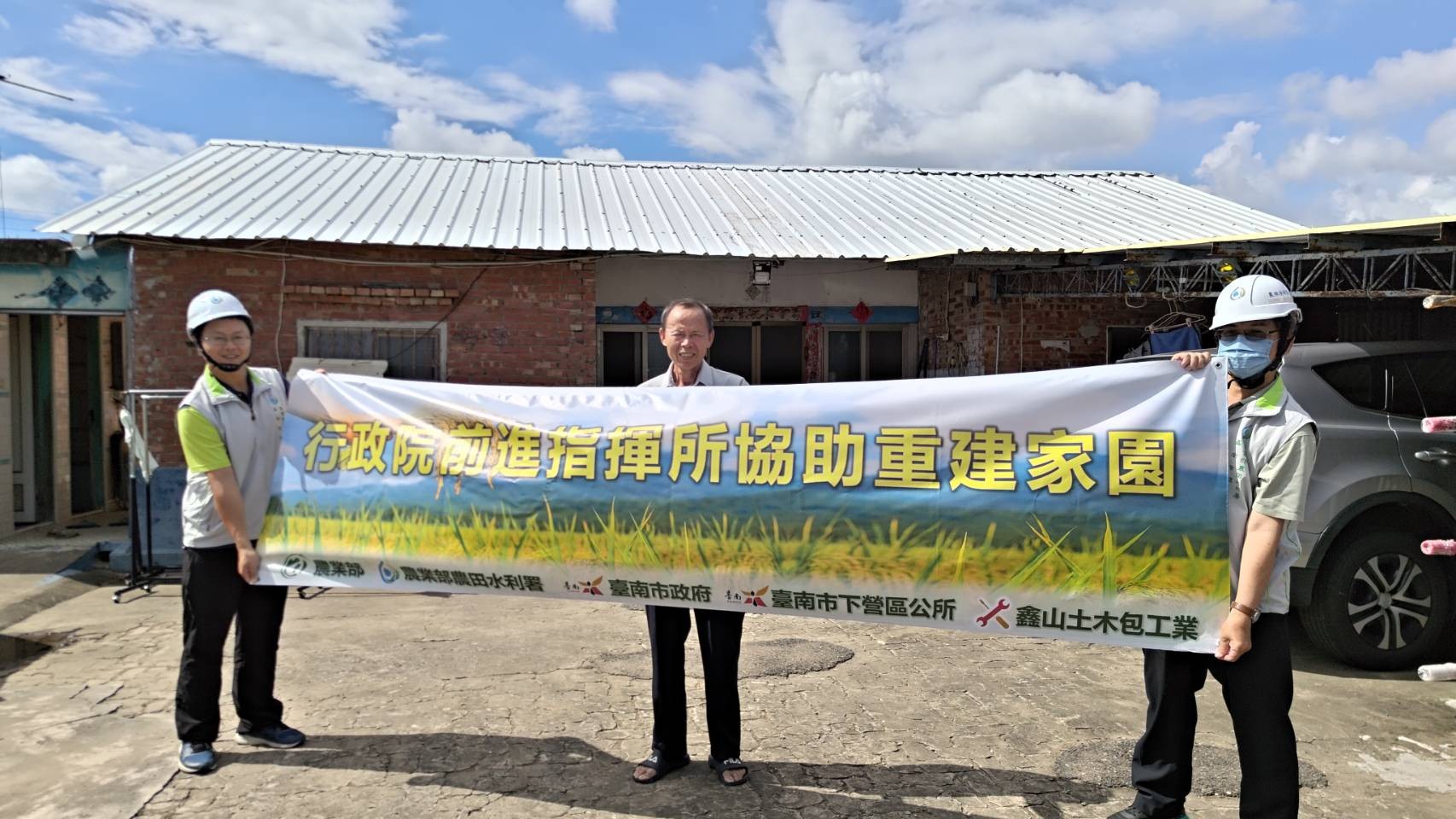 114年7月丹娜絲颱風重創南部地區,許多民眾房屋受損亟待復原,為此,行政院特成立雲嘉南災後復原前進指揮所,統籌災後復原重建工作,其中,請農業部農田水利署(簡稱農水署)負責協助臺南市下營區房屋修繕工作,農水署遵照總統及前進指揮所指示,以「穩定市場、合法快速、加速修繕」原則,媒合優質廠商進駐下營區,協助居民加速恢復家園。