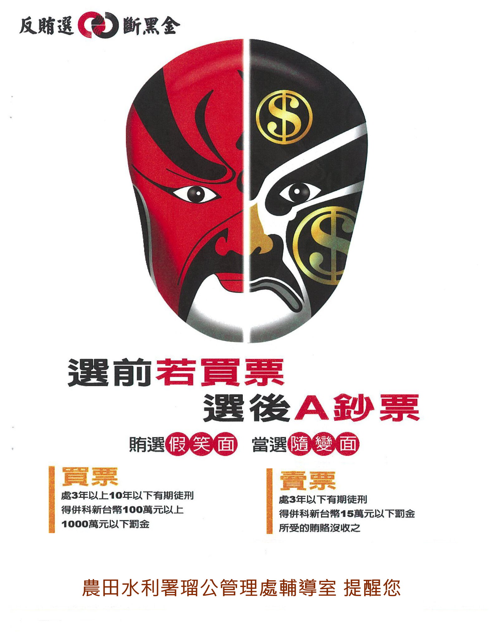 反賄選,斷黑金!選前若買票,選後A鈔票!
